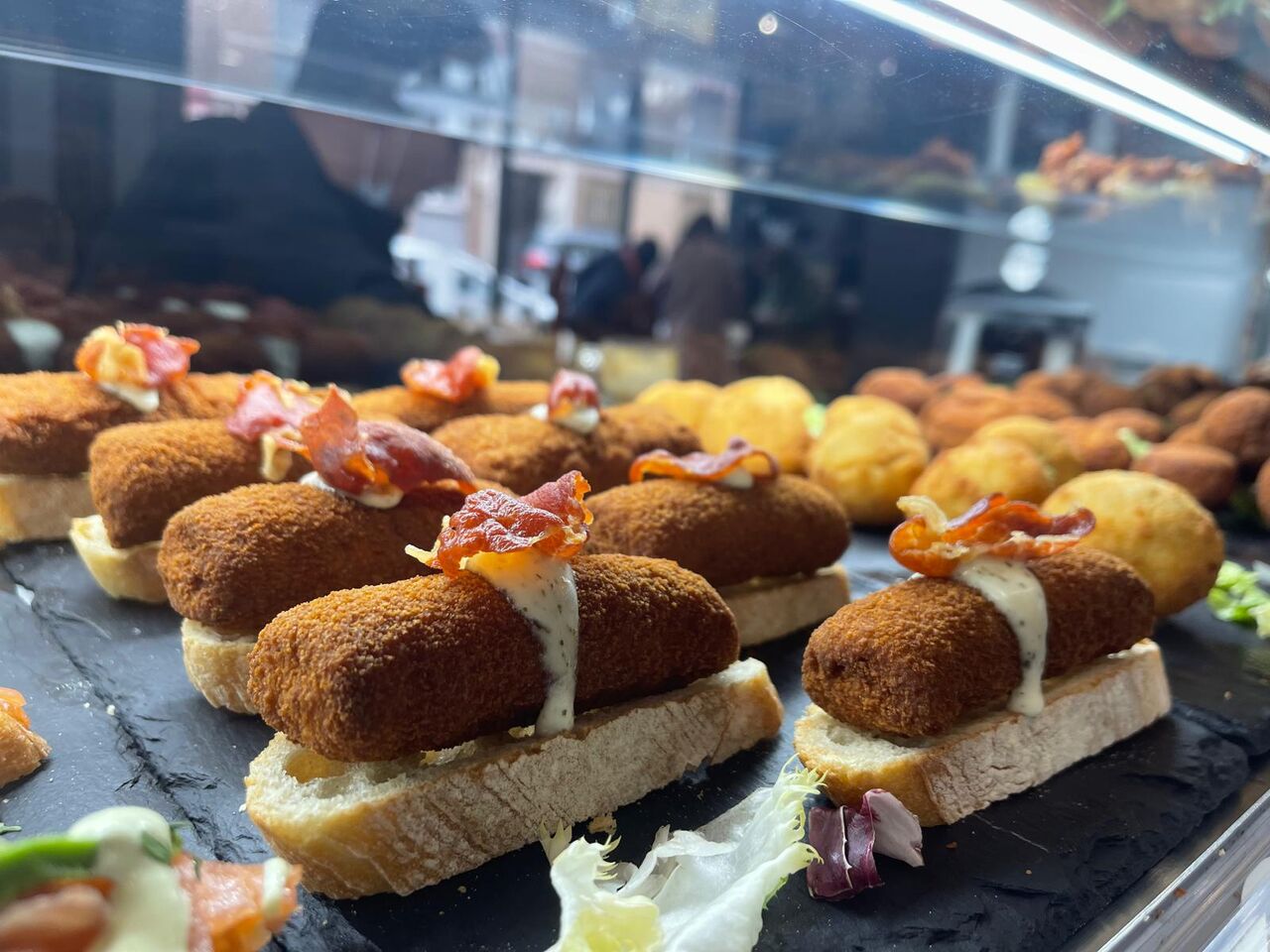 Para desayunar tienen tostadas, tortilla de patata, mini bocadillos , bollería… todos recién hechos del día … también disponen de una amplia barra llena de diferente tipos de tapas ideal para el vermout. Y para comer o cenar ofrecemos una carta variada con ensaladas, raciones , bocadillos, hamburguesas, sándwiches, tostadas y platos combinados.